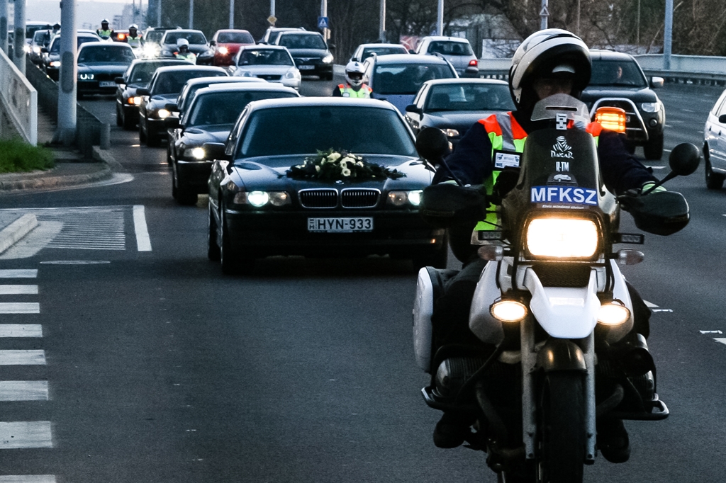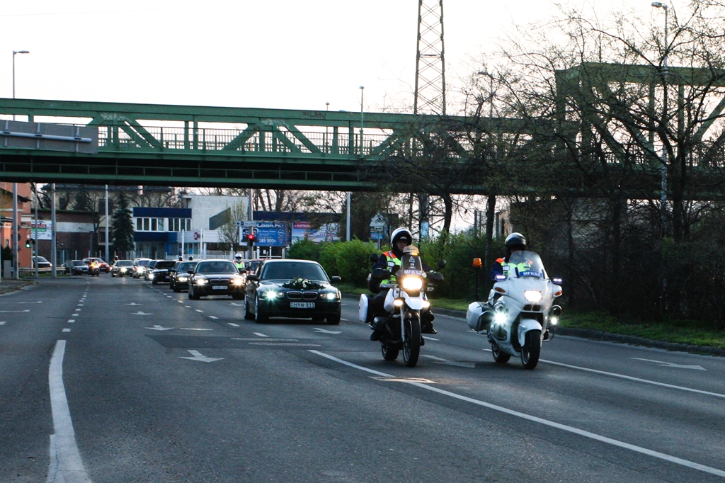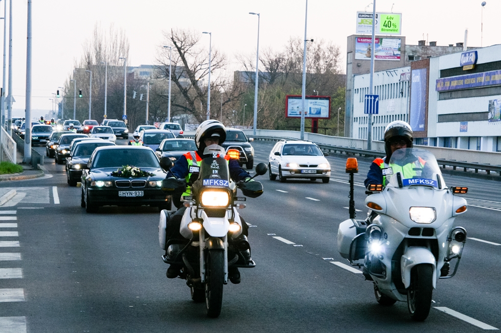 Egy dolgot nagyon sajnálok: elég kesze-kusza volt a házzasságkötőnél a szervezés az önkormányzat részéről, így el is csúsztunk, és pont amikor mentünk be az önkormányzat ajtaján, akkor hallottuk a nagy robajt – érkeztek a motorok! Kiszaladtam és fantasztikus volt látni és hallani őket, de sajnos nem tudtuk lekamerázni, pedig megérte volna, most szívesen visszanézném azt is!! J